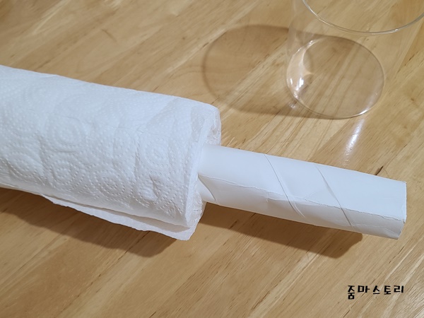 필요한 것을 준비했다면 이제 키친타월 안쪽 종이를 제거해 주세요. 키친타월과 접착이 되어 있으므로 손으로 조금씩 분리하면 쉽게 제거할 수 있습니다.