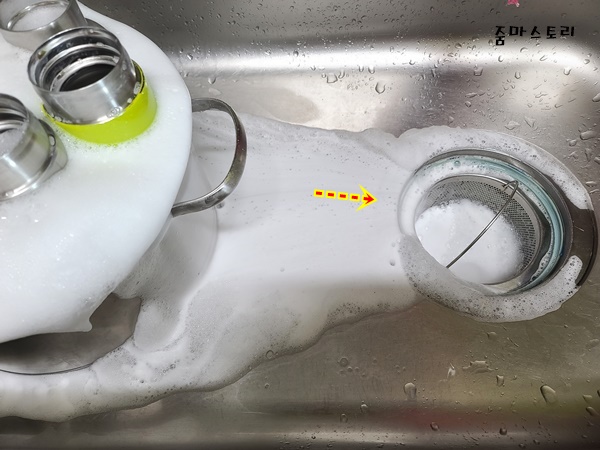 텀블러 속이 깨끗해질수록 거품은 풍성해지고 그 거품이 넘쳐서 배수구 청소도 자연스럽게 해 줄거예요.