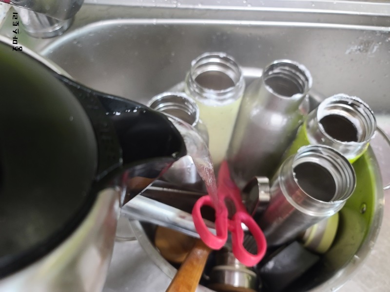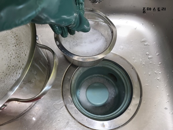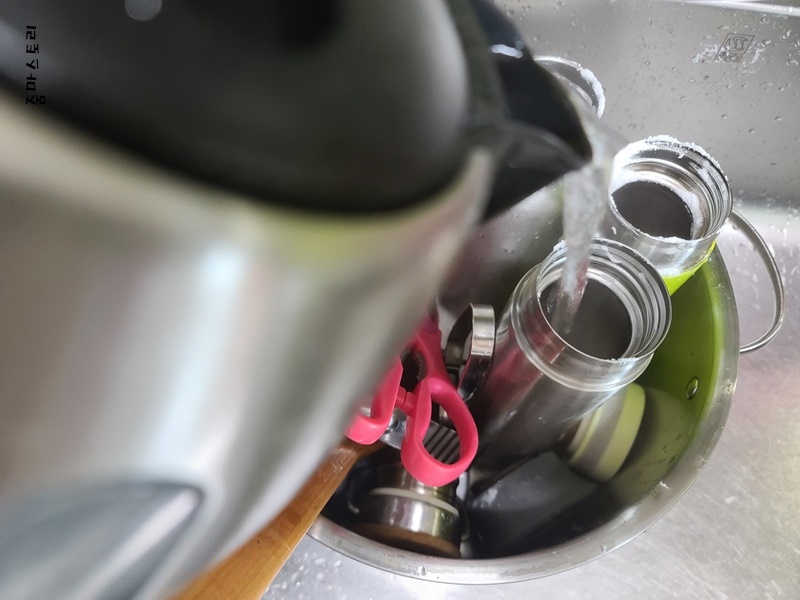 팔팔 끓는 물을 사용하면 세척력이 배가 되니 조심조심 해서 물을 부어 주세요.