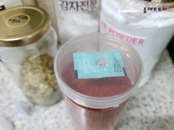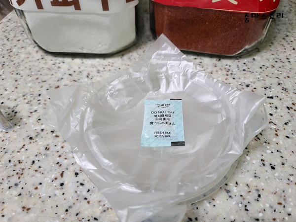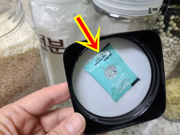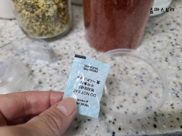 물론 보리차 뿐만 아니라 각종 곡류나 가루류에도 습기를 방지하기 위해 넣어 뒀는데 식재료를 사용할때마다 불편했어요. 그래서 이 점을 보안하기로 했답니다.