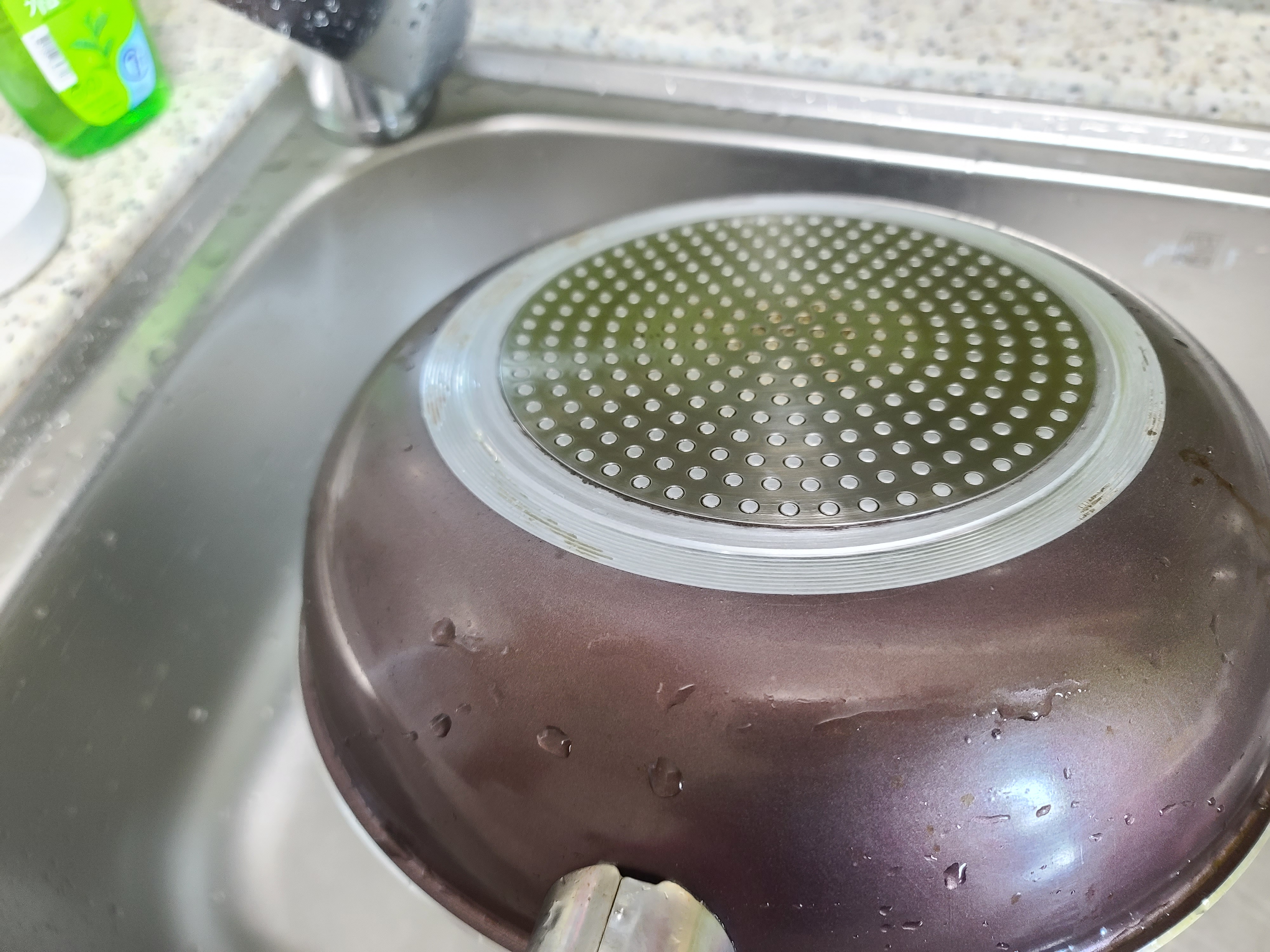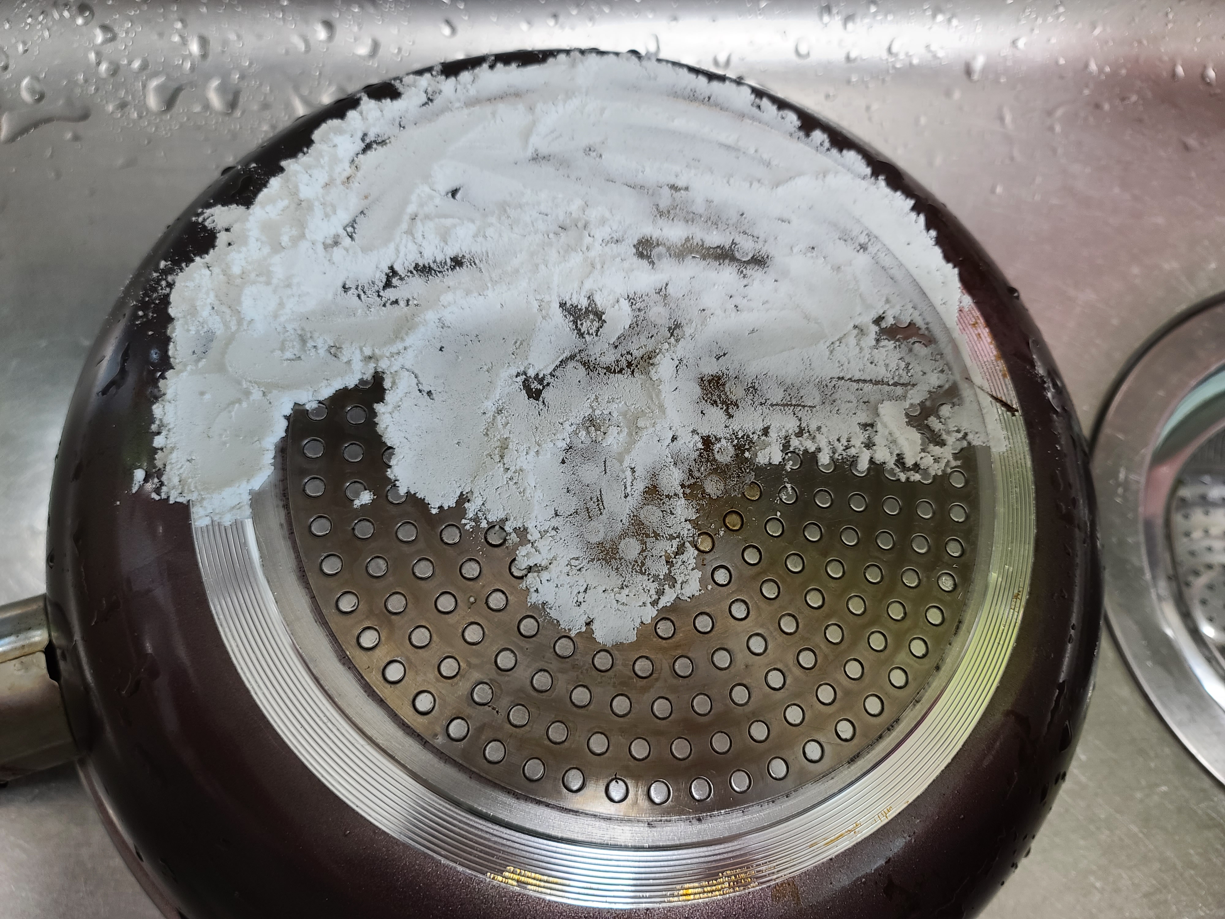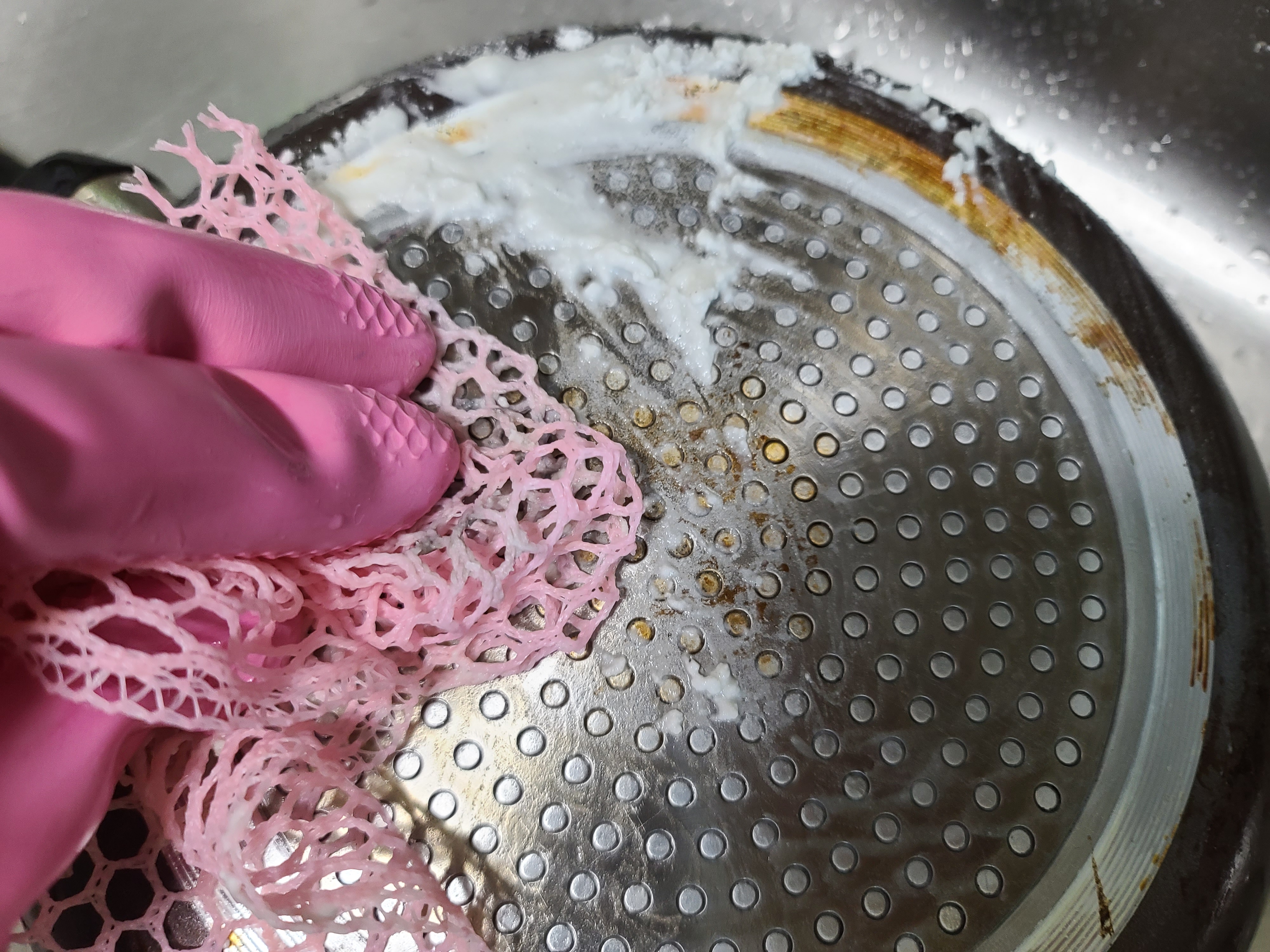힘들이지 않고도 후라이팬 뒷면이 깔끔하게 닦이는 겁니다. 이런 신세계를 보다니.... 어릴 적 장날에서 봤던 그릇 닦는 아저씨가 생각이 절로 나더라고요.