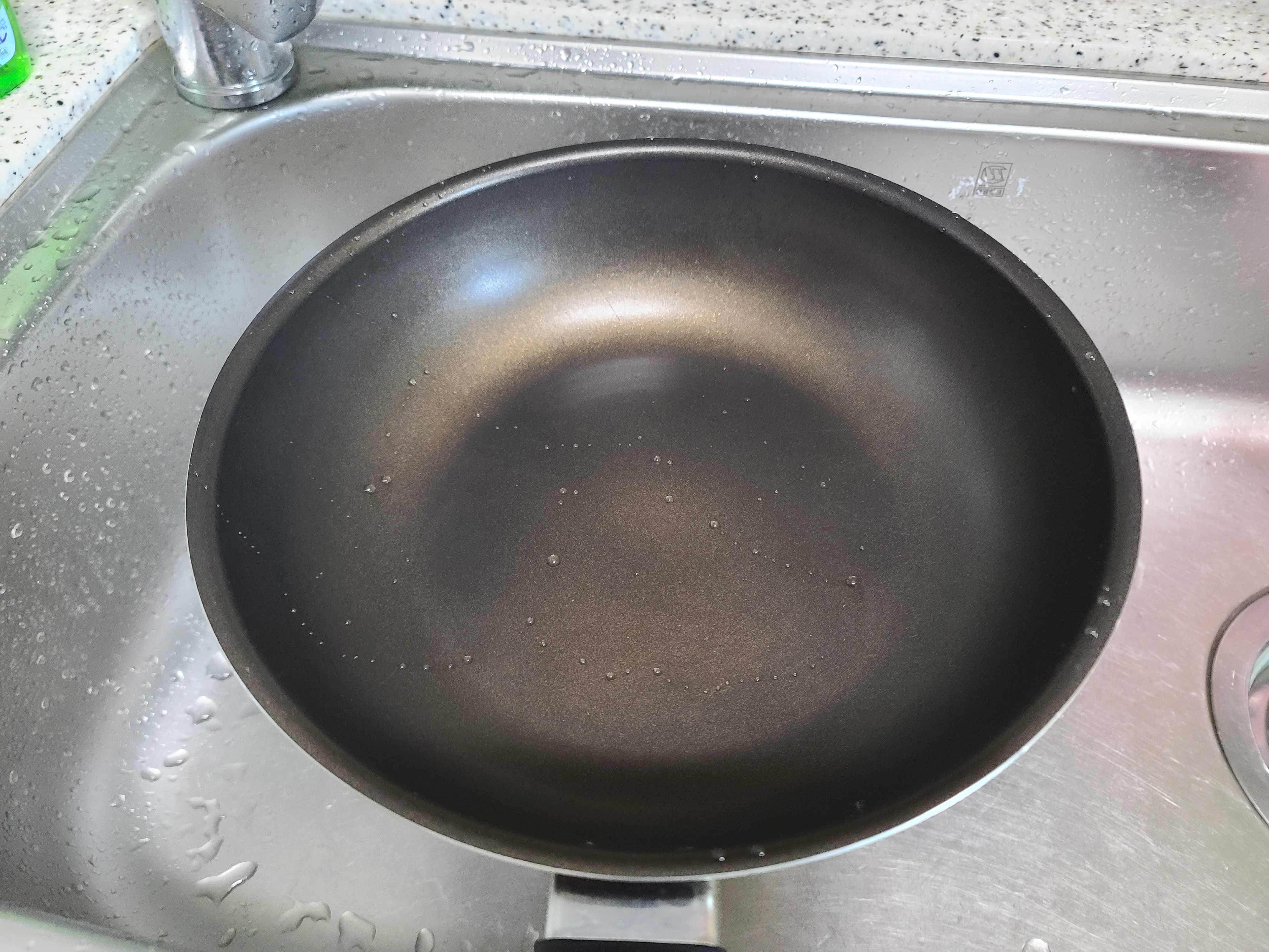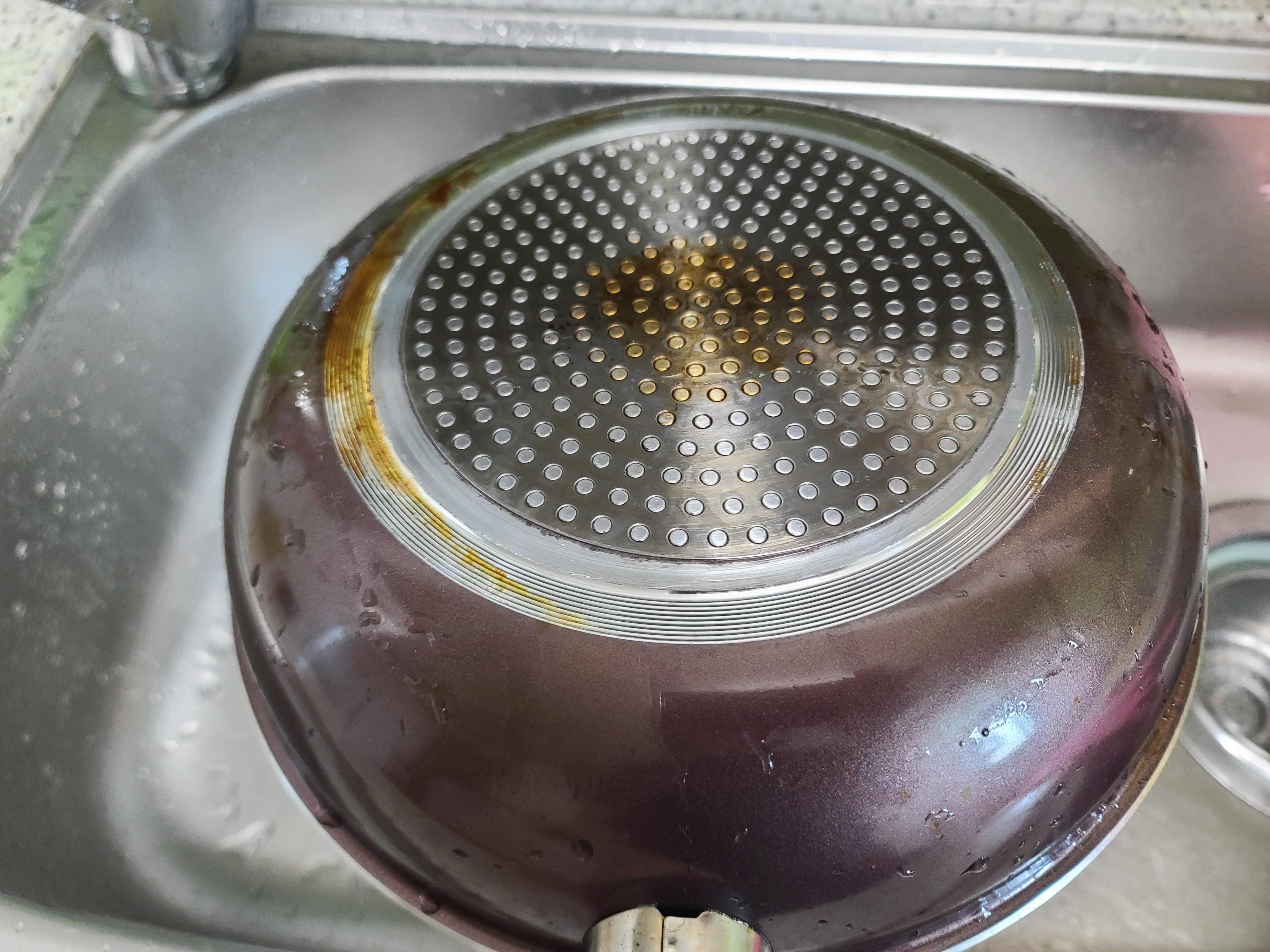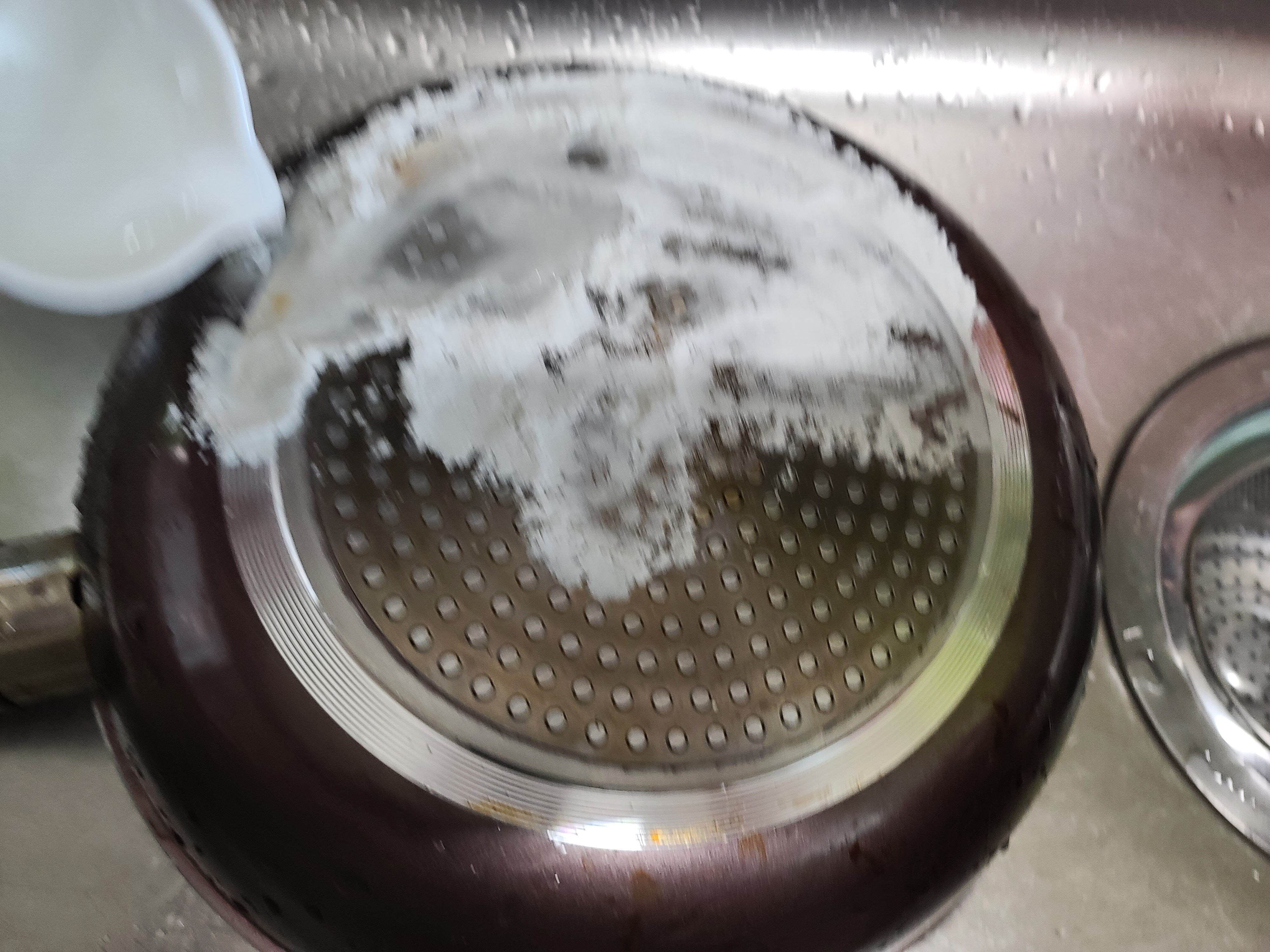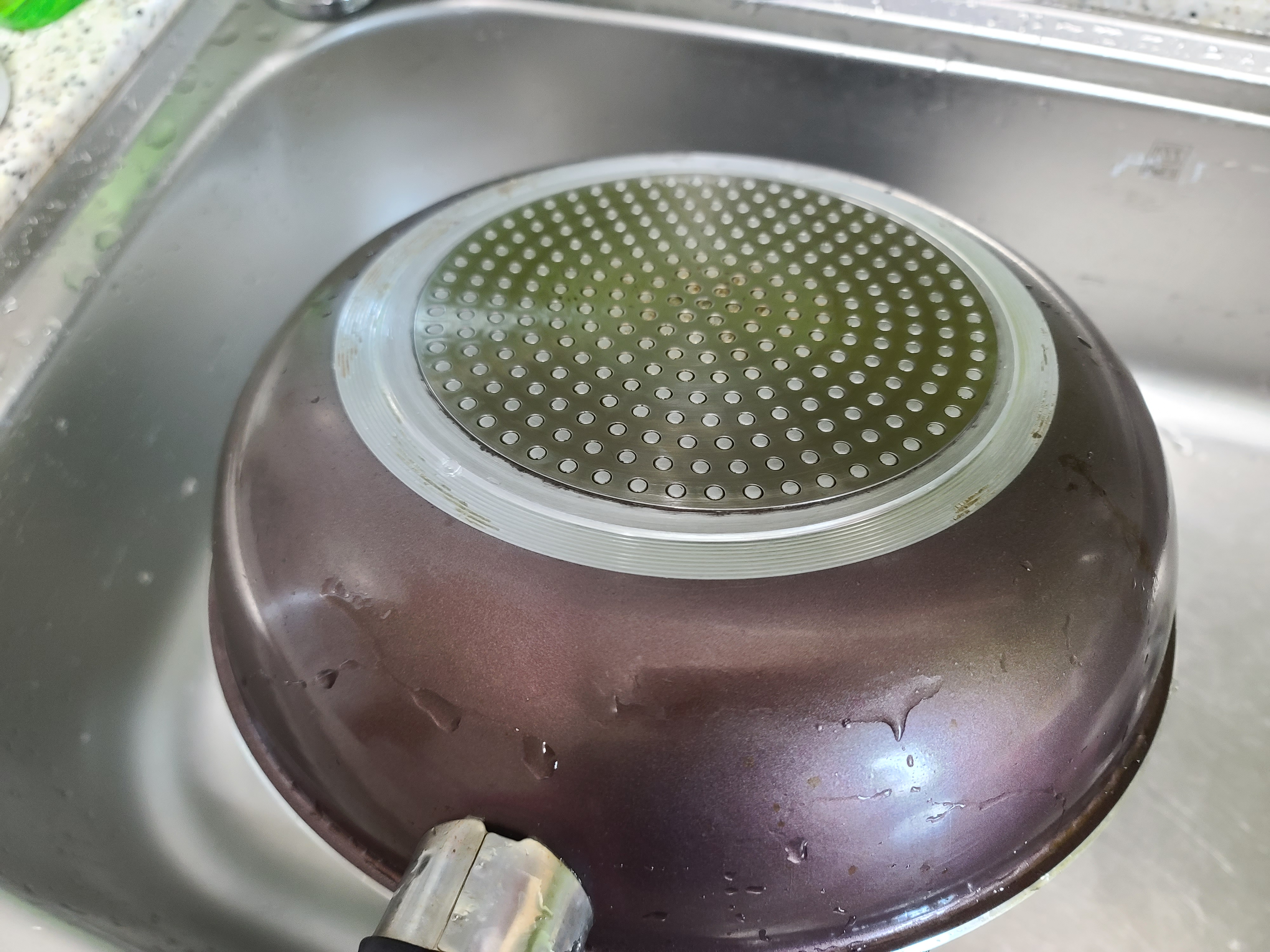 힘들이지 않고도 후라이팬 뒷면이 깔끔하게 닦이는 겁니다. 이런 신세계를 보다니.... 어릴 적 장날에서 봤던 그릇 닦는 아저씨가 생각이 절로 나더라고요.