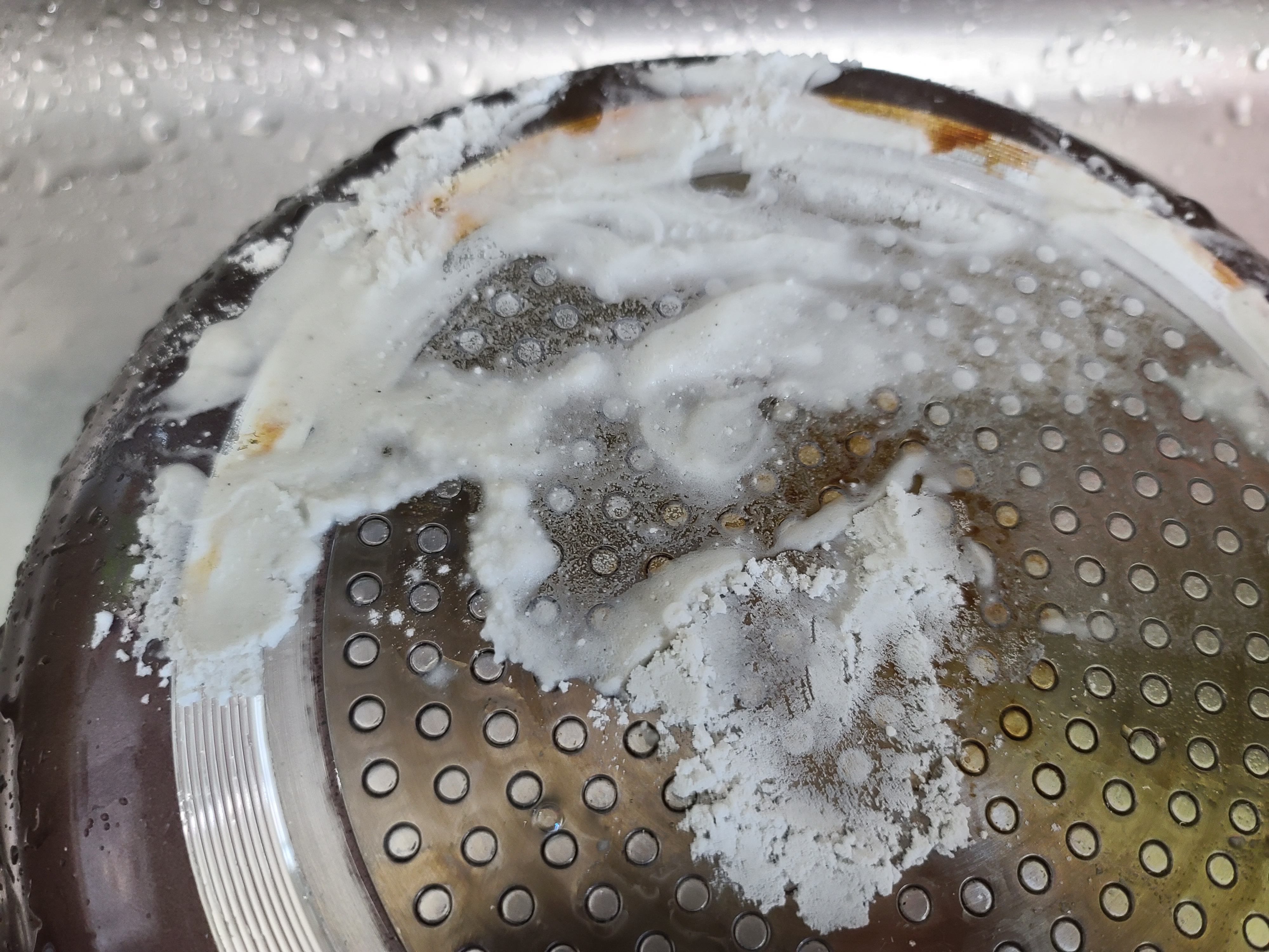 처음엔 가루가 너무 많이 뿌린 거 아닌가 하는 생각도 들긴 했지만 어차피 시험 삼아해 볼 거라 확실한 세척을 위해 넉넉히 뿌렸어요.