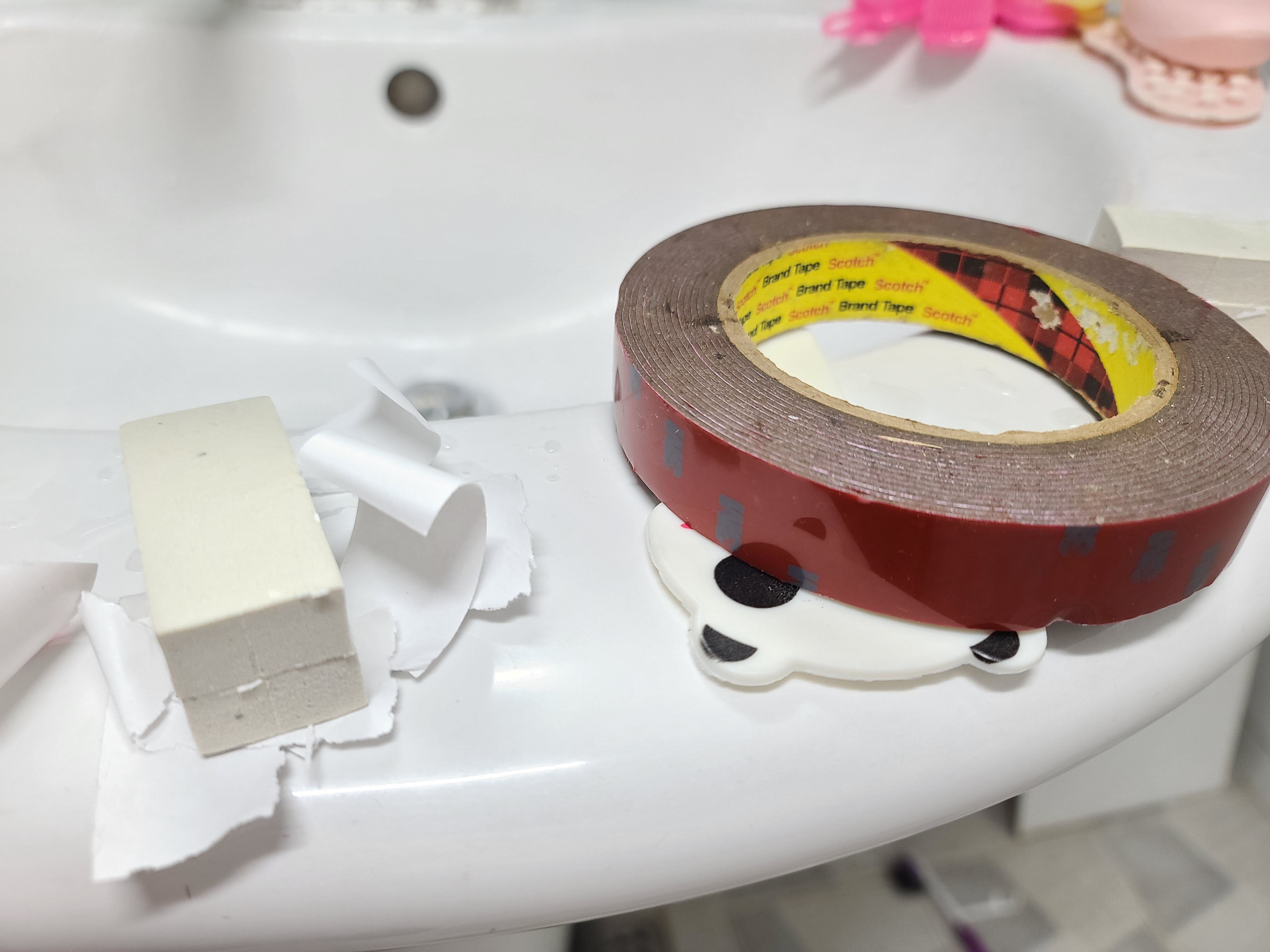 그렇다고 버리긴 좀 그렇고 해서 집에 있던 3M 양면테이프를 이용해 붙이기로 했습니다.