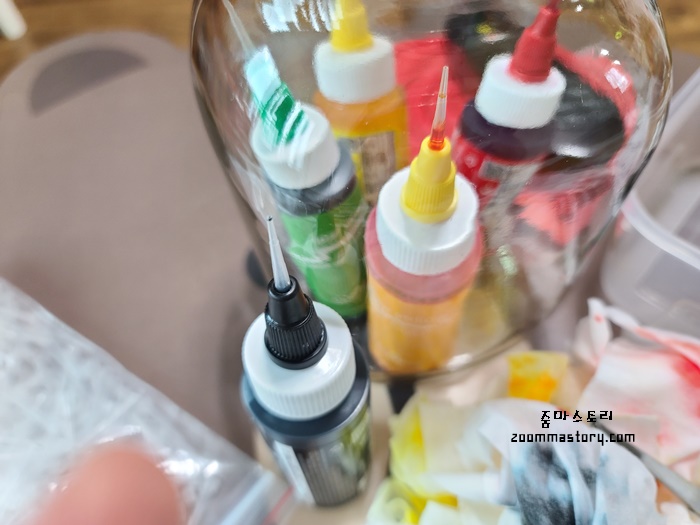 아참.... 작은 식용색소는 커버가 따로 없으니 그냥 꽂아서 사용하시면 되세요. 정말 간단하죠. 대용량이라 한 번 사용 후에 다시 교체해 사용하면 위생적이고 좋답니다.
