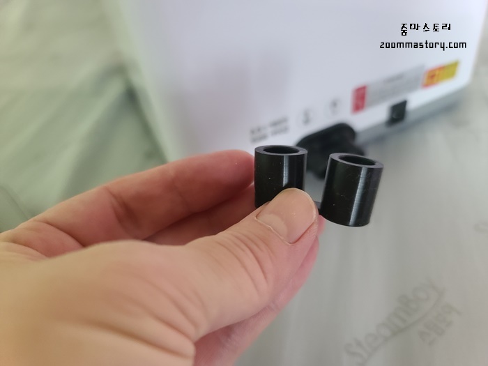 쿨매트에 물을 다 뺐다면 통에 있던 구멍과 쿨매트에 있던 구멍을 다 막아 줍니다. 이물질이 들어가는 것을 방지하기 위해서예요.