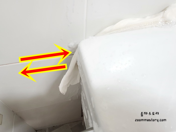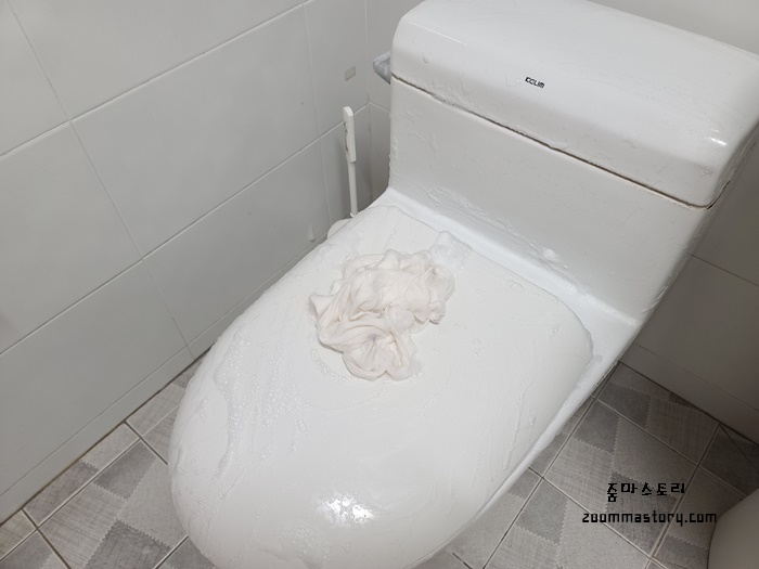 변기 이곳저곳을 닦은 뒤 누구나 간과하기 쉬운 곰팡이 서식지도 닦아 봅니다.
