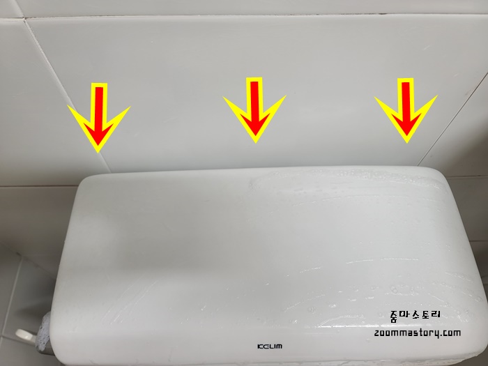 바로 변기 물통 뒷 부분이예요. 이곳 자주 청소한다는 분들 아마도 거의 없을 것 같아요. 저도 생각날때마다 아주 오랫동안 청소를 할 정도거든요. 하지만 이곳이 화장실 곰팡이 서식지라는 것을 잘 알지는 못하지요. 왜냐하면 그 뒷부분까지 곰팡이가 있을거란 생각을 하지 못할수도 있으니까요.