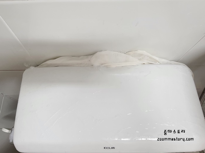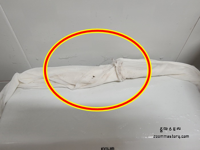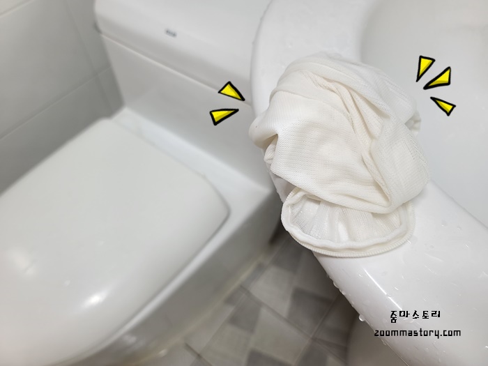세탁망 지퍼가 고장나 버리려다 청소할때 사용하니 완전 대박이었고요. 세탁망으로 변기 물통 뒷면을 깨끗이 닦으니 더 대박이었네요. 이거 그냥 버리려고 했는데 세탁해 잘 말려서 욕실 청소할때 자주 써야겠네요. 여러분들의 화장실 곰팡이 상태 괜찮나요? 장마철엔 한 번 점검해 보시길.........