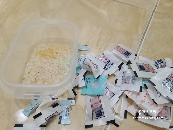 신발 속에 넣어 두었던 실리카겔 생각보다 많다.