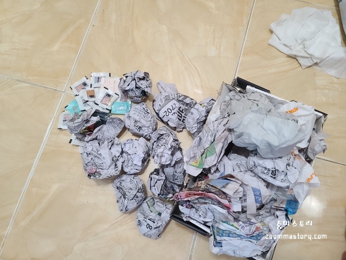 기존에 넣어 두었던 제습제는 꺼내고 새 제습제를 넣어 두었다. 물론 신문지도 다 꺼내 다시 새 신문지를 신발 속에 넣어 두었다. 신문지가 사실상 예전엔 습기를 먹는 최적의 재료이긴 했지만 이것 또한 너무 오래 습기를 머금으면 오히려 손발 속이 곰팡이의 주범이 된다. 고로 자주는 아니어도 습해진 느낌이 들때 교체하는게 정답이다.