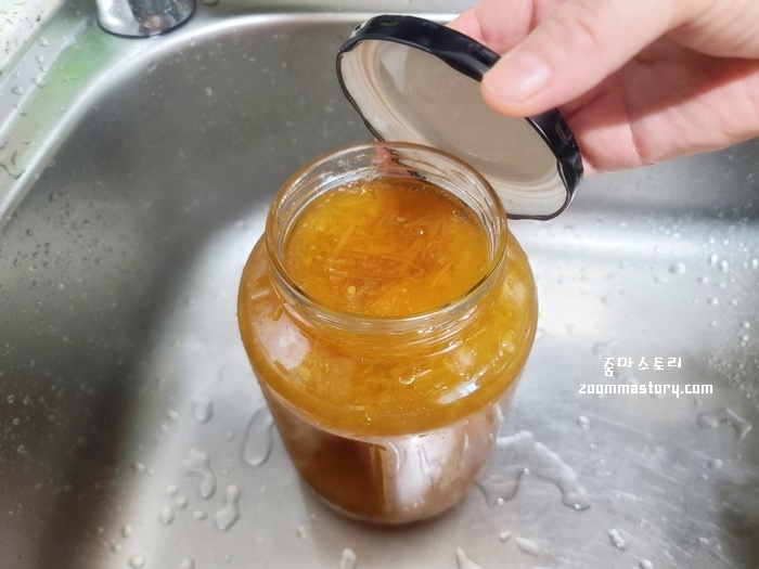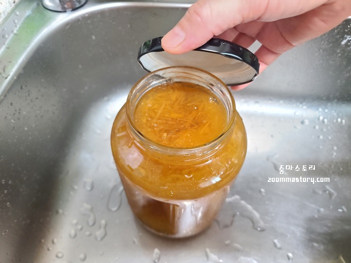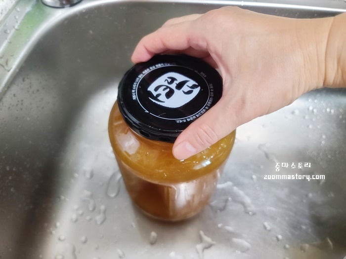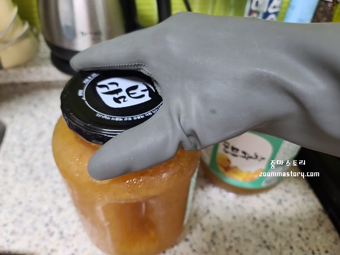 사실 얼마전 모과차를 구입하고 냉장고에 넣어 두었던 것이 화근이었다. 새 유리병은 간혹 내부 압력과 외부 압력으로 이난 차이로 인해 잘 안 열릴 때가 있다. 아무래도 그런 이유라는 생각에 일단 주방 싱크대 주변에 온도차를 극복 하게끔 내 놓았다. 그런데 언제까지 기다려야 하는지 그냥 갑갑해 당장 이 방법 저 방법 시행해 보기로 했다.