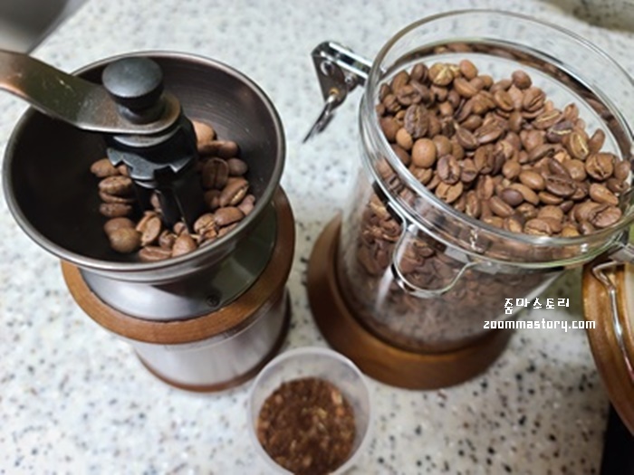 연속으로 핸드밀을 사용할 경우 정말 번거롭지만 그래도 처음 핸드드립으로 커피를 내리는 분들에겐 이 또한 해 보시면 커피의 매력에 빠지실거예요. 수동 그라인더는 나름대로 손맛이 제대로 느낄 수 있어 개인적으로 더 좋아 하는 것 같아요. 오늘 소개한 디자인의 핸드밀은 원리가 같으니 분쇄도 조절 오늘 도전해 보세요.
