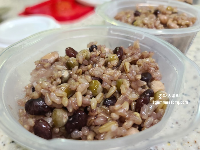 이른 아침.... 잡곡을 물에 불리고 압력밥솥에 담으니 꽤 양이 많았다.