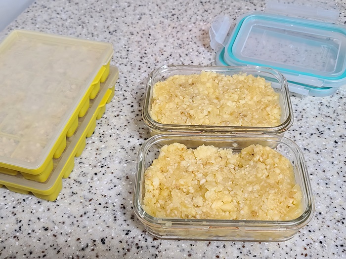 냉동으로 보관할 마늘과 냉장실에 넣어 둘 마늘을 담은 뒤 필요시 사용하며 된다. 뭐든 요리도 편해야 하게 되듯이 양념도 미리 준비해 두면 요리할때 시간도 많이 절약되고 좋다.