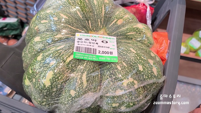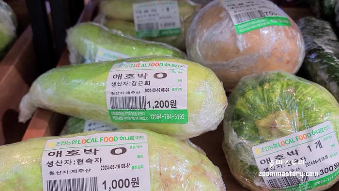 애호박이 기존 우리가 마트에서 봐 온 모양이 아니다. 지나가다 밭에서나 볼 법한 것들이 이곳에서 만날 수 있고 저렴하게 판매도 한다. 생산자와 원산지 표기도 잘 되어 있고 가격도 저렴하고 믿고 먹을 수 있게 되어 있다.
