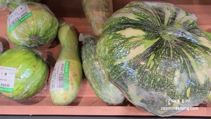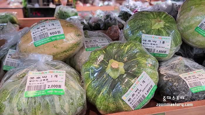 애호박이 기존 우리가 마트에서 봐 온 모양이 아니다. 지나가다 밭에서나 볼 법한 것들이 이곳에서 만날 수 있고 저렴하게 판매도 한다. 생산자와 원산지 표기도 잘 되어 있고 가격도 저렴하고 믿고 먹을 수 있게 되어 있다.