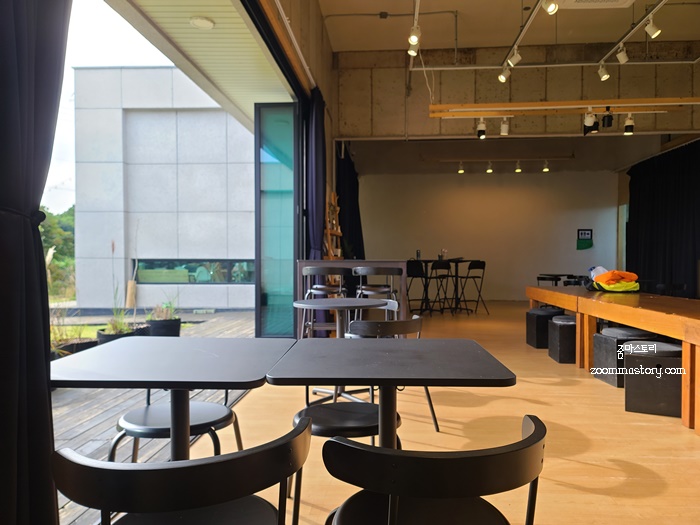 평소에는 여느 카페처럼 영업하지만 자주 연극 작품 발표도 한다고 한다. 커피를 마시다 보니 한쪽에선 연극 연습을 하는 모습이 포착 되었다. 카페 공간에서 라이브 연극을 볼 수 있는 묘미가 있으니 이 또한 제주도에서는 매력적인 부분이기도 했다.