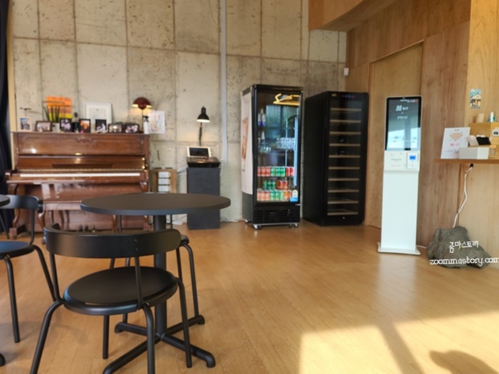 내부는 그렇게 화려하지는 않다. 테이블과 약간의 인테리어가 고작이지만 제주도라는 특성상 자연과 함께 지어진 건물이라 나름대로 낭만은 있다.