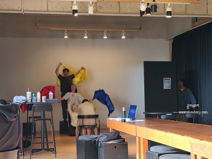 평소에는 여느 카페처럼 영업하지만 자주 연극 작품 발표도 한다고 한다. 커피를 마시다 보니 한쪽에선 연극 연습을 하는 모습이 포착 되었다. 카페 공간에서 라이브 연극을 볼 수 있는 묘미가 있으니 이 또한 제주도에서는 매력적인 부분이기도 했다.