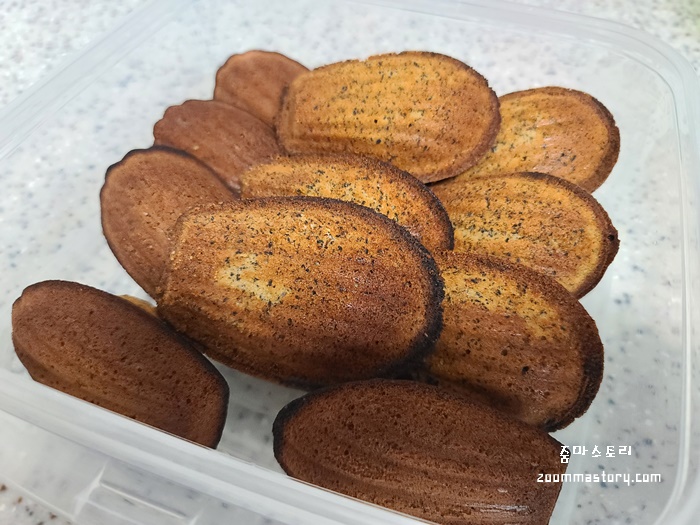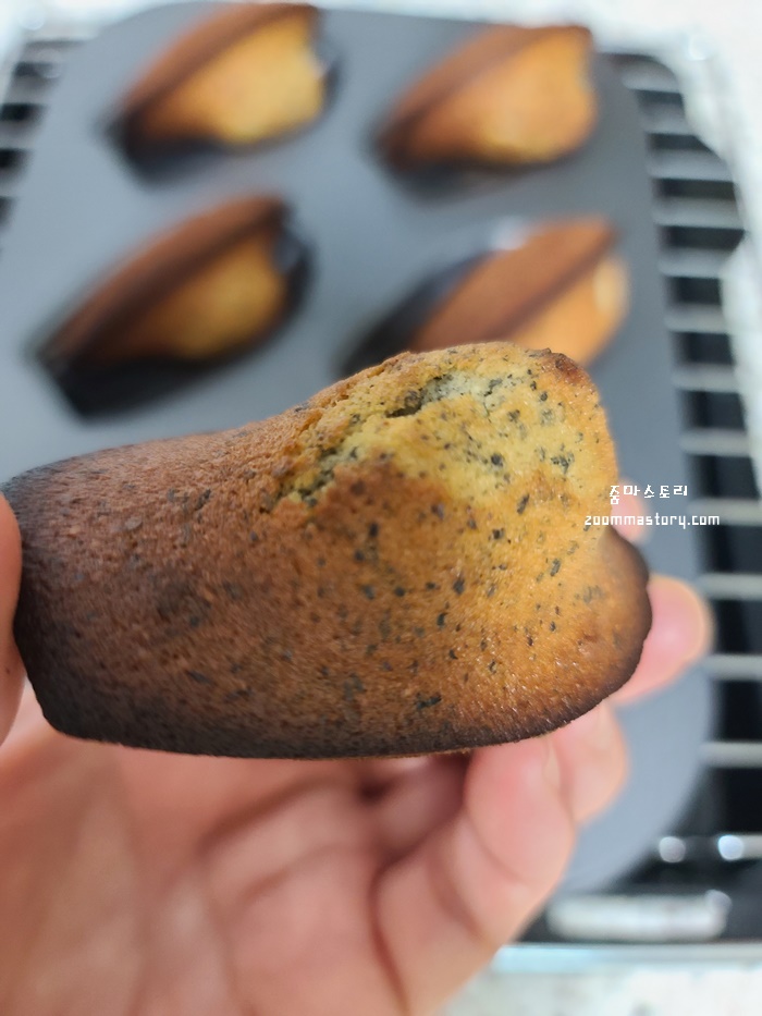 이렇게 빵빵해진 마들렌은 오븐의 불조절이 제일 중요하더라고요. 미리 예열하고 너무 낮은 온도에서 굽지 않는게 포인트입니다.