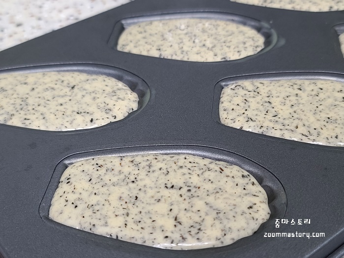 전 조금 넉넉히 반죽을 채워 넣었어요. 보통 처음 하시는 분들은 80% 해 주시면 되세요.