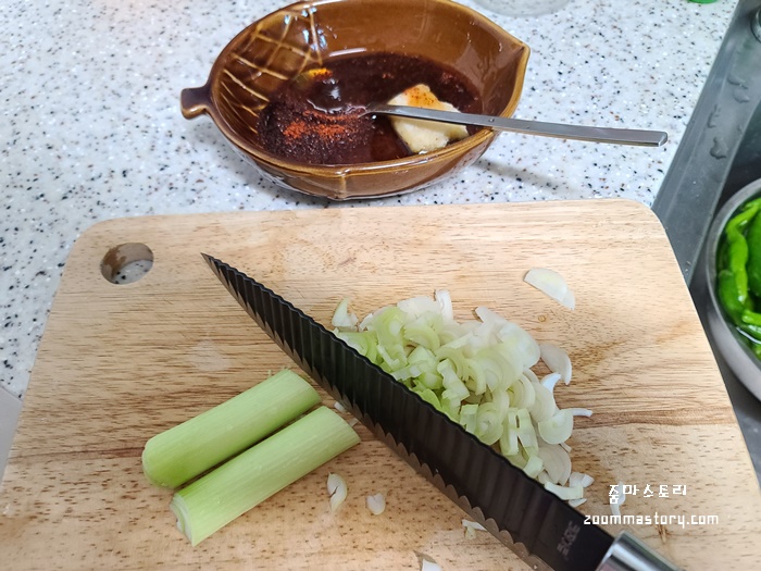 곱게 다진 대파를 섞어서 양념장을 만들어 놓습니다.