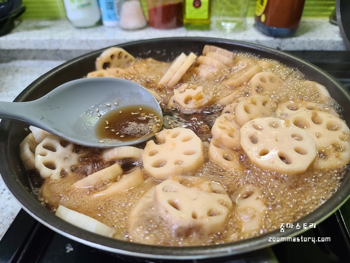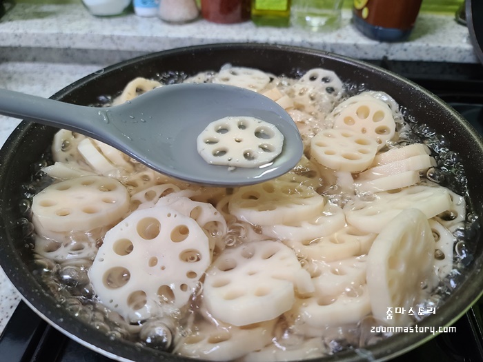 연근은 아삭아삭 해야 맛있거든요. 너무 익히지는 마세요.