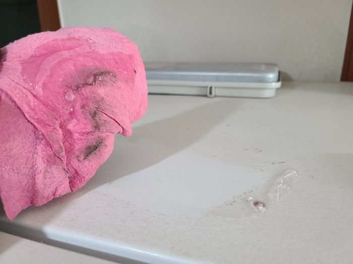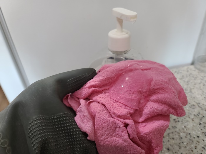 손소독제는 그 어느 세제보다 강력할 뿐 더러 빨리 청소가 가능합니다. 손소독제 사용할 때는 물에 적셔 둔 걸레등으로 물을 꾹 짠 뒤 사용해 주세요. 전 행주로 사용하다 낡아서 버리려던 것으로 청소했습니다.