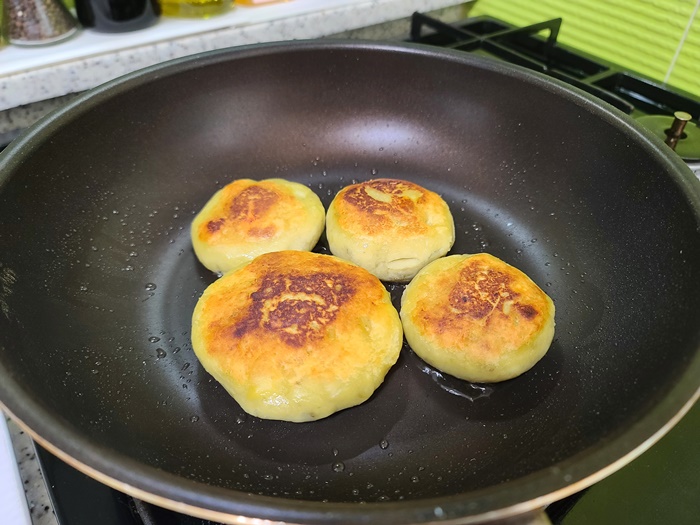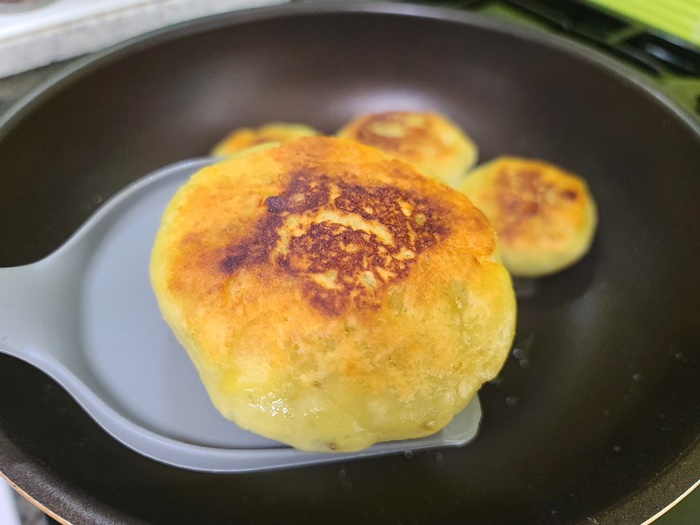 삶은 고구마가 많아서 그런지 호떡으로 빚어 놓으니 꽤 양이 많더라고요. 먹을 만큼만 굽고 나머지는 냉장고에 넣어 두기로 했어요.