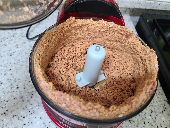 분쇄기로 30초 정도 돌리면 아래 사진처럼 엄청 곱게 갈아진 모습인데요. 이 상태에서 올리브오일을 넣어 10초~ 20초 정도 돌려주면 시중에 파는 땅콩버터의 모습이 됩니다.