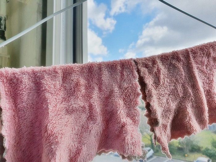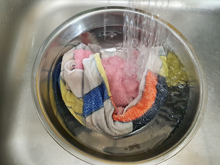 이렇게 깨끗이 씻은 뒤 헹궈서 햇볕이 잘 드는 곳에 두어 말리면 살균소독은 물론 청결한 행주를 사용할 수 있답니다