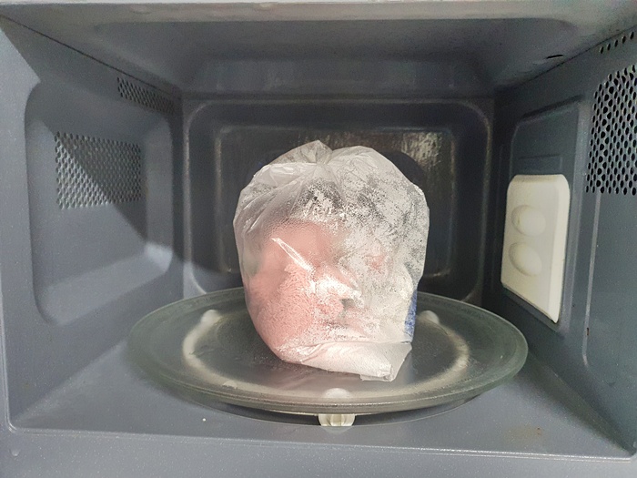 전자렌지에 넣고 약 3~4분정도 돌려 줍니다. 전 3분만 돌렸어요. 각 가정마다 전자렌지 용량이 다 다를 수 있으니 시간은 적절히 조절해서 해 줍니다.