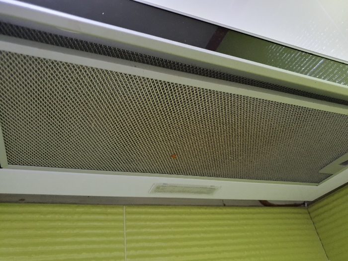 후드를 자세히 보니 먼지도 보이고 기름도 보였어요. 기름이 보인다는건 후드 안쪽 날개 부분도 엄청 더럽다는 이야기가 되겠죠.