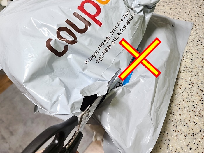 처음 쿠팡에서 물건이 오면 가위부터 찾았습니다. 성질 급한 사람들은 자칫 안의 내용물을 자르는 경우도 있었겠지만요.