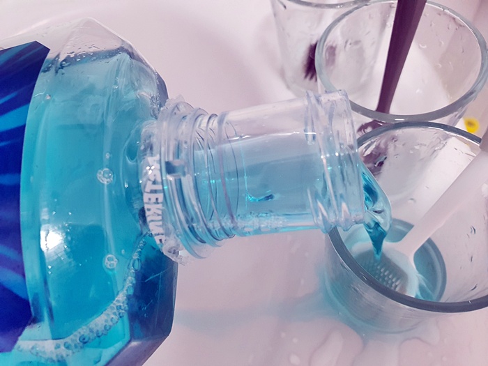 구강청결제 양은 칫솔모가 잠길 정도로만 부어 주면 됩니다. 그리고 이 상태로 5분 정도 방치하면 끝이에요.