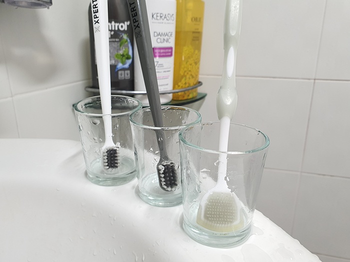 5분 방치한 후엔 흐르는 물에 깨끗이 씻어 주고 햇볕에 잘 말려 사용하면 세균 걱정 없이 칫솔을 사용하실 수 있습니다. 살균 소독 주기는 1주일에 한 번 정도면 적당하고요. 습한 날씨에는 욕실이 아닌 햇볕에 소독하는 것도 잊지 마시길요.