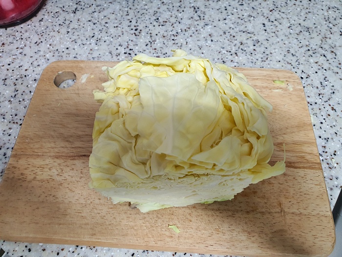 양배추 씻을때는 따로 뭔가 넣지는 않아요. 채를 썰어서 물에 잠깐 담궈 놓은 뒤 한 두 번 헹궈내면 됩니다.