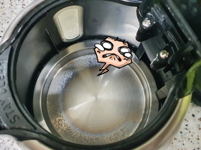 단, 여기서 주의해야 할 점은 식초를 넣고 전기포트를 끓일 때는 꼭 뚜껑을 열어 두세요. 물론 식촛물을 너무 많이 붓지 않는 것도 하나의 팁입니다. 바닥에 있는 물때를 제거하는게 목적이니 물을 반이상 아니 더 많이 붓는건 아니랍니다.