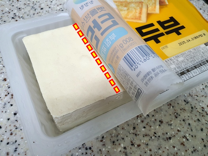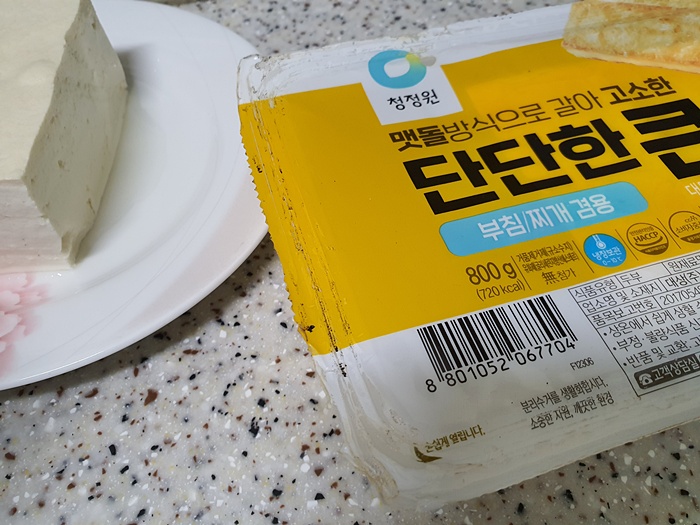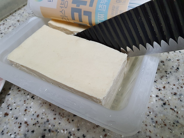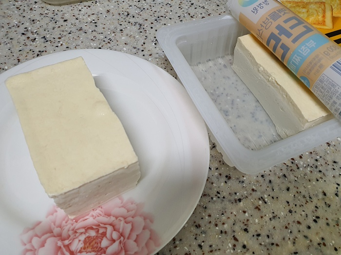 전 두부를 필요한 만큼만 사용하고 나머지는 다시 넣어 둘 거예요. 따로 락앤락에 담아서 넣어도 되긴 하지만 나머지도 그렇게 오랫동안 보관할 일이 아니기에 다시 덮어 두기로 했답니다.