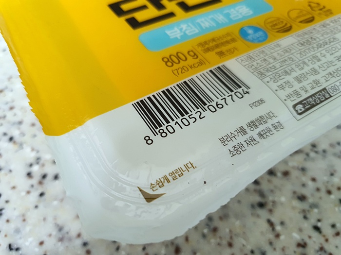 두부를 개봉할때 평소 빨리 뜯느라고 칼을 콕 찍어서 찢어 개봉하는 경우도 있잖아요. 이제는 그렇게 개봉하지 말고 두부 윗면을 자세히 보세요. 그럼 쉽게 손으로도 개봉 가능해요.