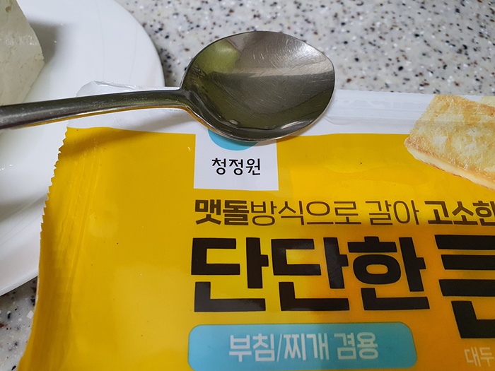 보통 남은 두부는 락앤락 통에 넣어서 소금물을 만들어 다시 부어 주잖아요. 맞아요. 그렇게 보관하면 됩니다. 하지만 따로 옮기지 않고 기존 두부 통에 보관할거면 숟가락을 이용해 밀봉해 주면 처음 개봉할때 본 두부가 되니 오히려 더 괜찮더라고요. 그래서 전 간혹 이렇게도 남은 두부 보관 하고 있답니다.