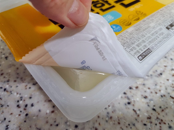 그럼 남은 두부는 그대로 통에 담아 두려면 어떻게 해야 할까? 결론은 다시 비닐을 덮어 두면 되는데요. 공기가 들어가지 않게 잘 밀봉하는 일이예요.