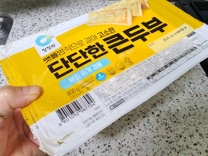 전 두부를 필요한 만큼만 사용하고 나머지는 다시 넣어 둘 거예요. 따로 락앤락에 담아서 넣어도 되긴 하지만 나머지도 그렇게 오랫동안 보관할 일이 아니기에 다시 덮어 두기로 했답니다.