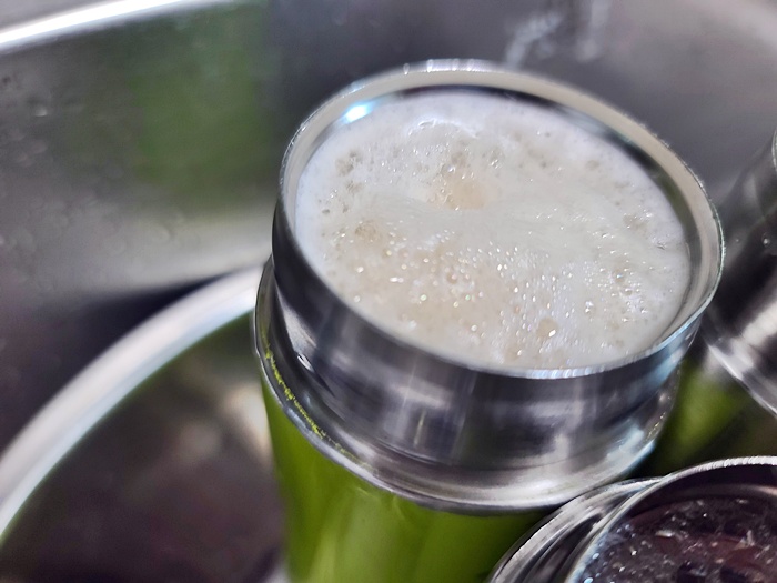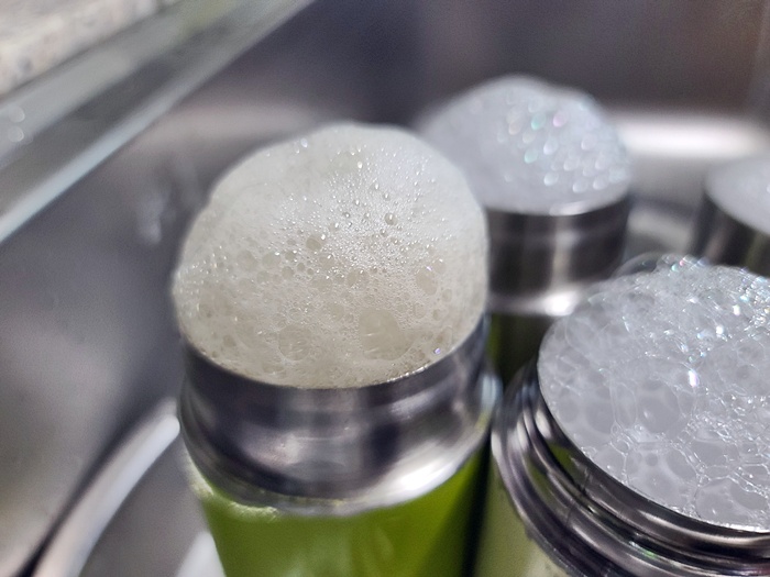 커피를 담았던 텀블러가 제일 색이 많이 착색된 것 같아요. 과탄산소다와 뜨거운 물이 만나니 이내 거품 색도 갈색으로 되었네요. ㄷㄷㄷㄷㄷㄷㄷ