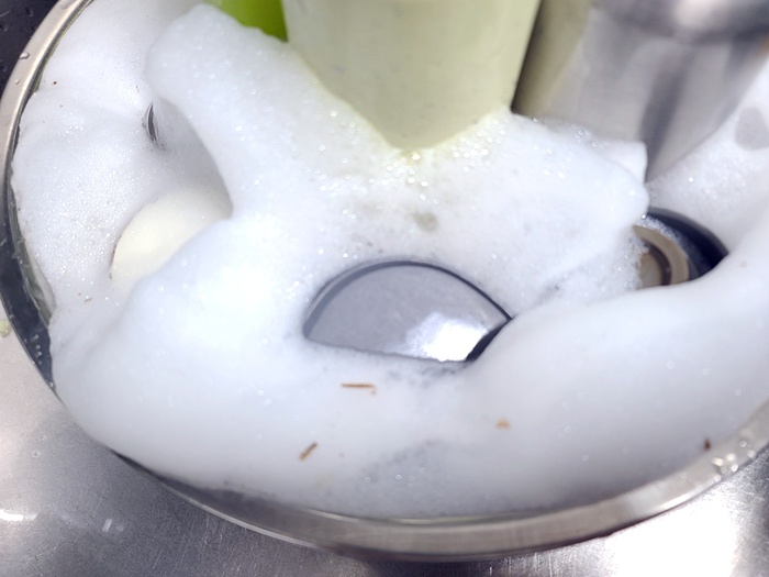 이 상태로 20분 정도 뒀다가 솔과 수세미로 세척하면 됩니다.