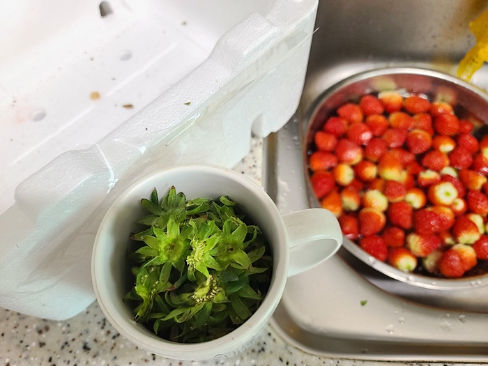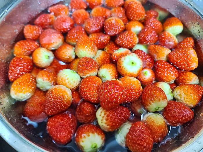 사이즈는 조금 작긴 하지만 어찌나 달던지 잼용으로 사용해도 되고요. 그냥 먹어도 됩니다. 전 그냥 먹어요. 정말이지 하나도 버리는 것 없이 어찌나 모두가 싱싱한지 몰라요. 딸기는 바로 먹는 과일이니 잘 씻는게 제일 중요한 것 같아요. 딸기 표면이 굉장히 부드럽고 미세한 구멍이 많아서 농약이나 먼지가 쉽게 스며 들기 좋거든요. 그런 이유에서 꼼꼼하게 세척해 먹는게 제일 중요해요.