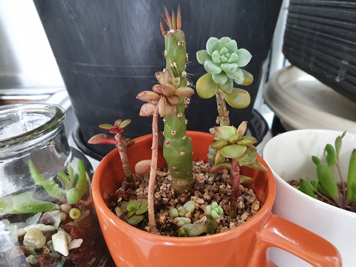 이쁜 다육이를 심었어요. 컵이다 보니 화분과 달리 독특하고 더 이쁜 것 같아요. 작은 종지도 다육이를 심어 놓으니 너무 이쁘더라고요. 봄철, 기분 전환하기 딱 좋은 화분이 되었어요.