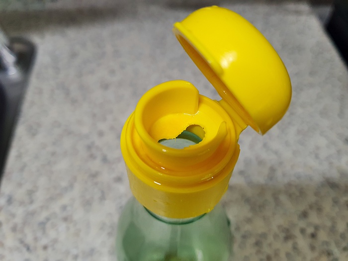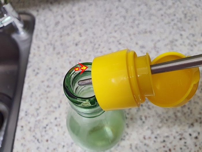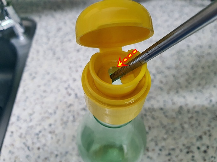 아참... 기름병 씻기 전 뚜껑을 먼저 제거해 줘야 하는데요. 이거 은근 잘 안 열리죠. 그럴때는 젓가락을 이용하면 쉽게 뚜껑을 열 수 있답니다.
