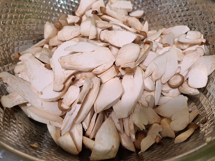 고기 대신 새송이 버섯을 많이 넣어 식감을 좋게 하기로 했답니다.